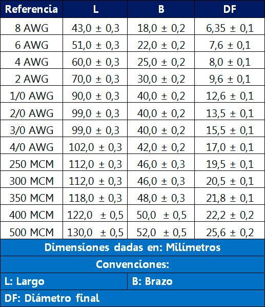 Todos los conectores deben ser utilizados únicamente con la referencia de cable para el que fueron fabricados y que aparece marcado en la pala, en el barril del conector o en la etiqueta del contenedor de unidades.